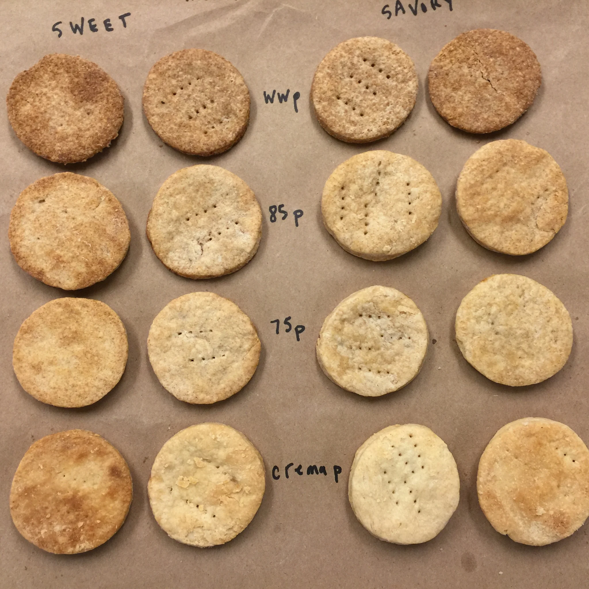Desiree began by doing basic pie dough/long flake crust also known as pate brisee and pate sucree with each of our pastry flours: whole wheat pastry, 85Pastry (high extraction), 75Pastry, and Crema. She next moved on to doing simple vanilla cakes. We felt these two exercises would establish bookends that could define the spectrum by which we would explore the various characteristics of these flours